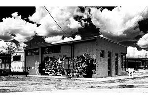 A building being renovated in Atlanta, GA with newly painted Street Art. Digital infrared capture