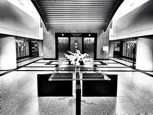 A beautiful flower arrangement in the lobby of Truist Tower